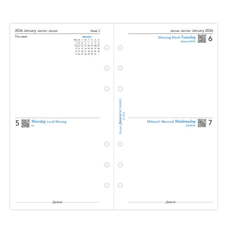 Get more space for planning your day with this personal two days on one page diary in three languages.