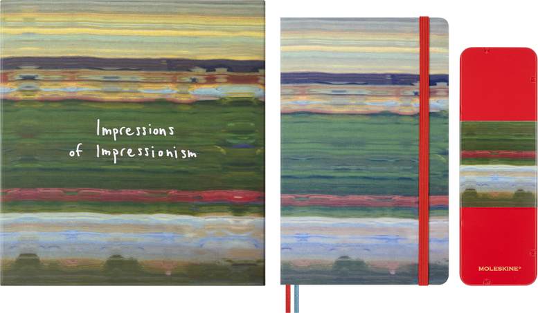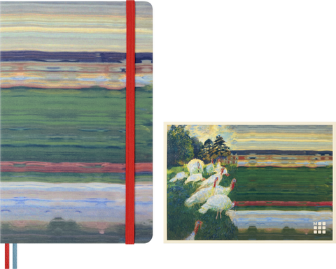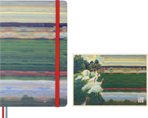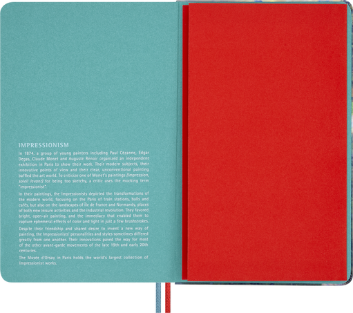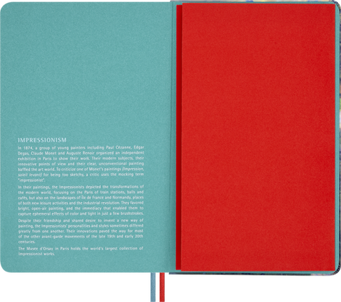 - Large, plain, fabric hard cover notebook inspired by Impressionist art