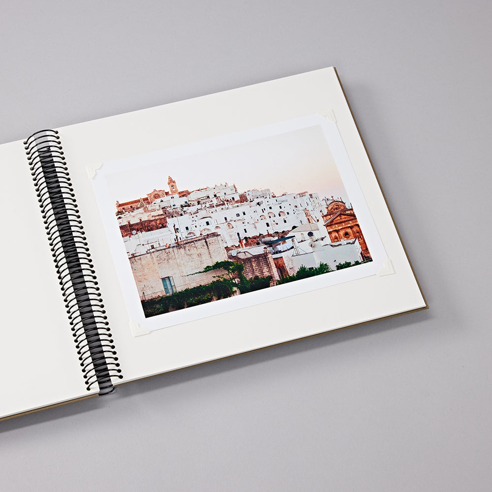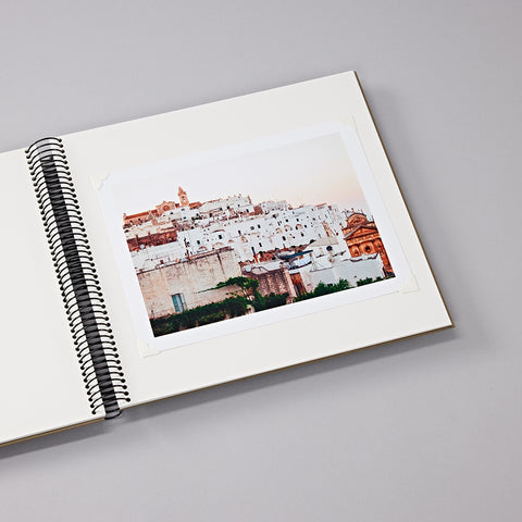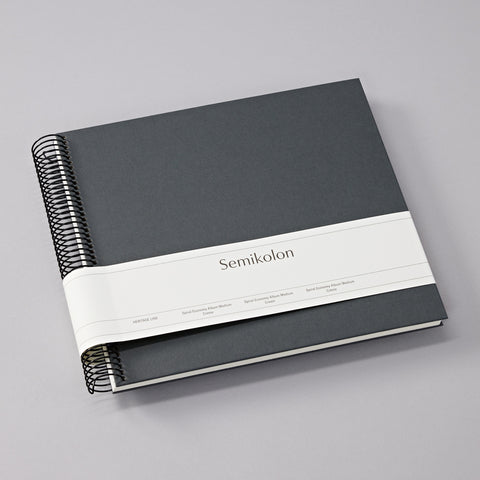 The Medium Spiral Photo Album Economy has 40 pages of black or cream white photo mounting board. It is covered with Efalin, a durable fine linen paper and has a traditional design. Thanks to the spiral binding, the photo album can be opened 180° and increases with the laminated pages. The pages lie completely flat when the album is opened.
