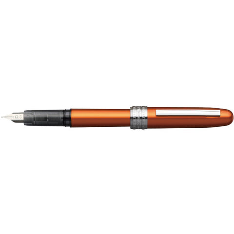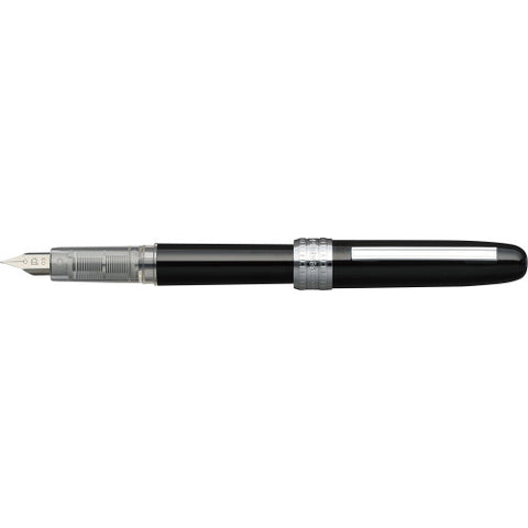 The Platinum plastic fountain pen, designed in Japan features a anodized aluminum body. The barrel is tough with a shiny finish and chrome metal pocket clip and engraved cap ring. It's a refillable fountain pen with the famous 'slip and seal' Mechanism which means the cap is air tight and prevents the ink from drying out.